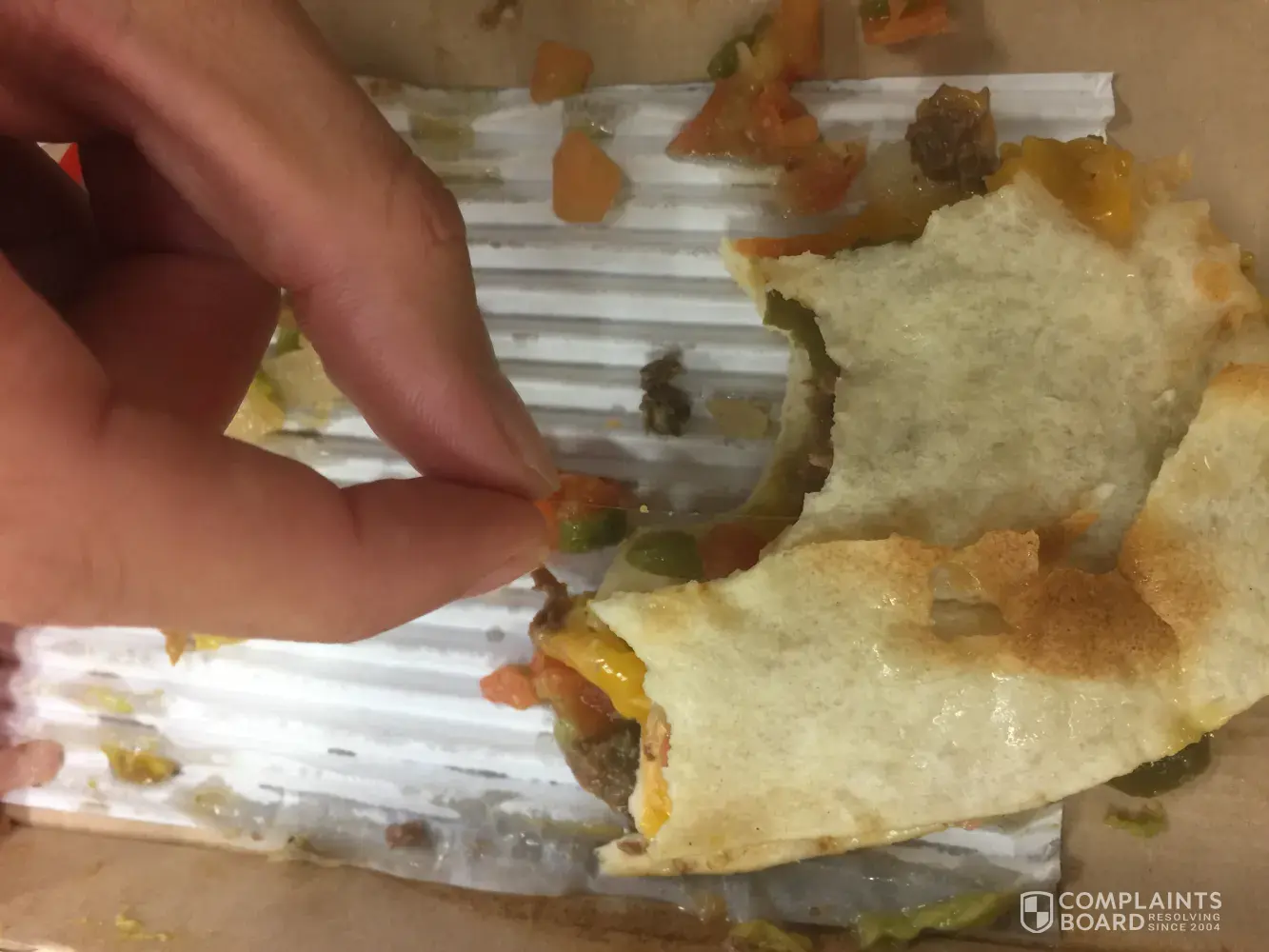 Attached is a picture of a hair that the Chinese student is picking out of his quesadilla. Really gross. I think you've lost more than a few customers today.