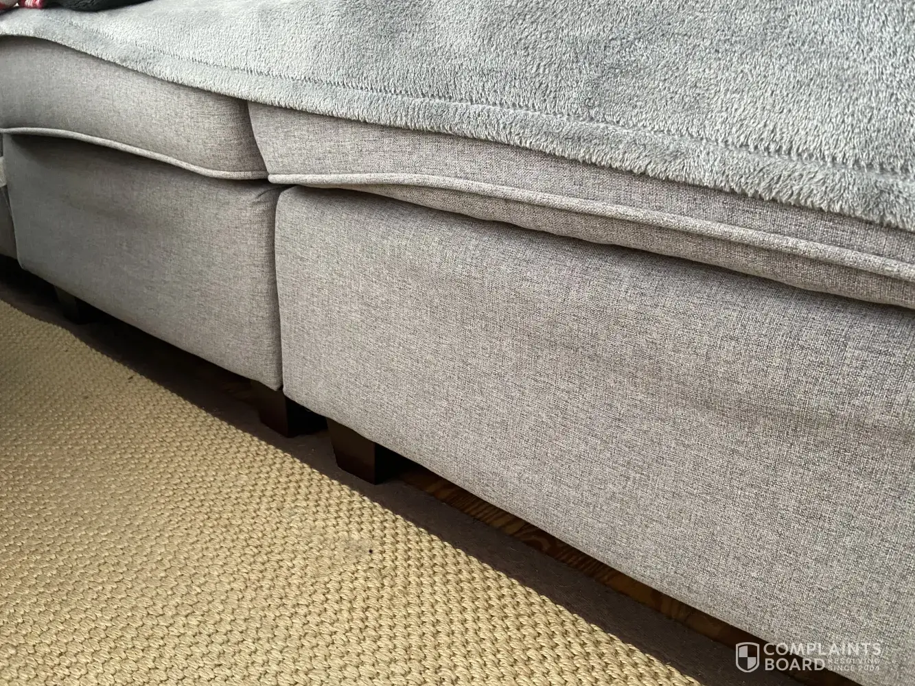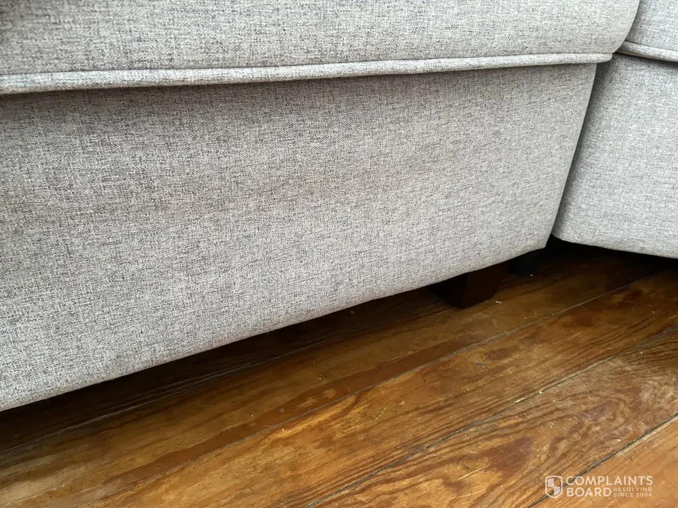 The sectional seat bottoms are having a fabric or structural issue. the material is bubbling. a pouch or loose fabric is appearing under each seat cushion. Two people use this couch and we are of normal weight 150 and 200 lbs. the couch shouldn't be buckling after less than 8 months. It looks terrible and I fear this will increase. Can this couch be replaced? returned or a credit be offered for the defective product.