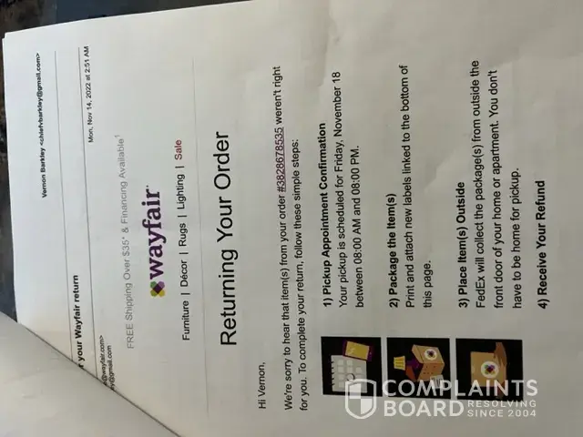 Wayfair Complaints Page 6 of 17