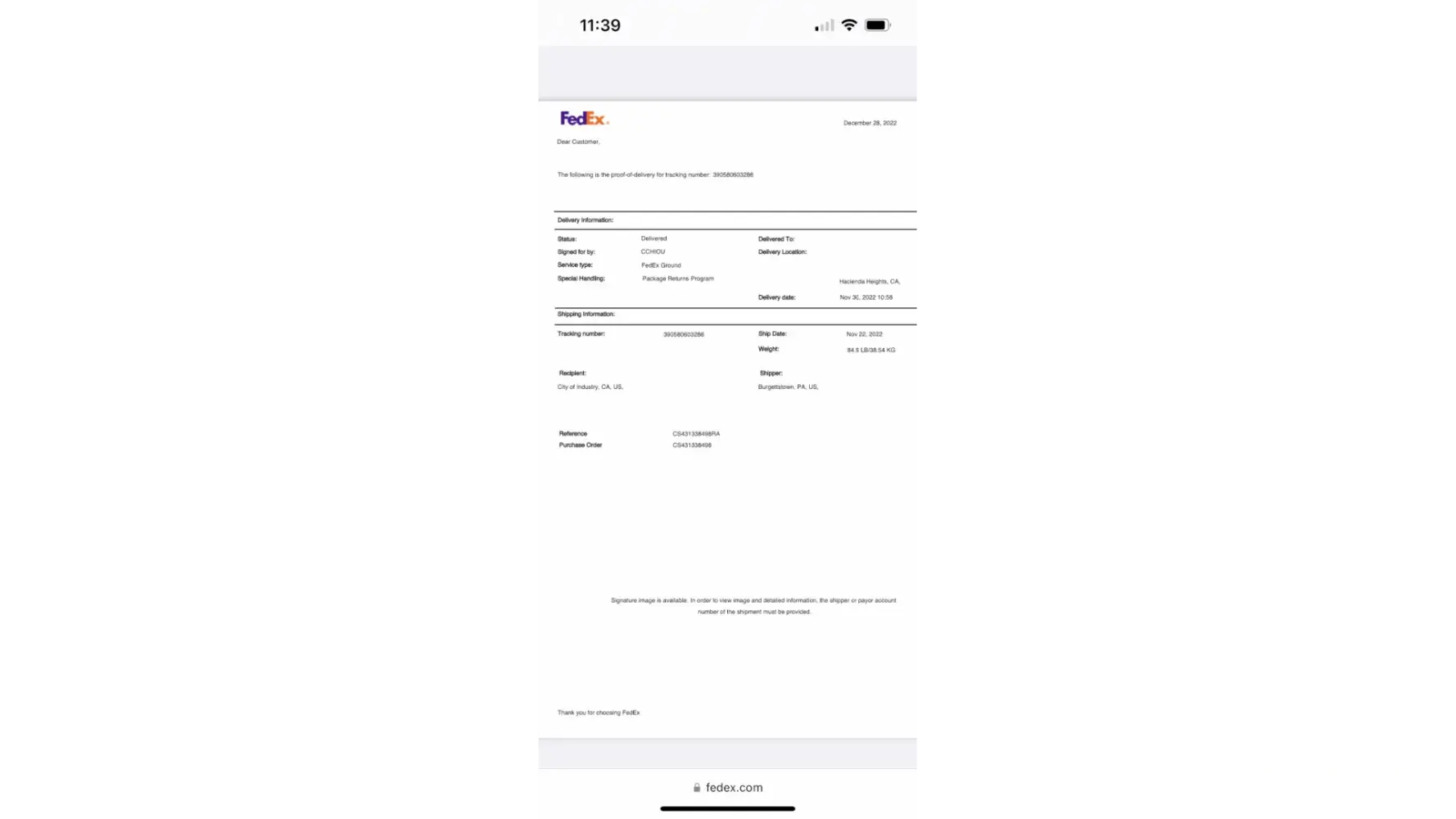 1. I ordered a chair from Wayfair in July of 2022. I used my home address of 8374, Jurupa Valley, CA 92509.