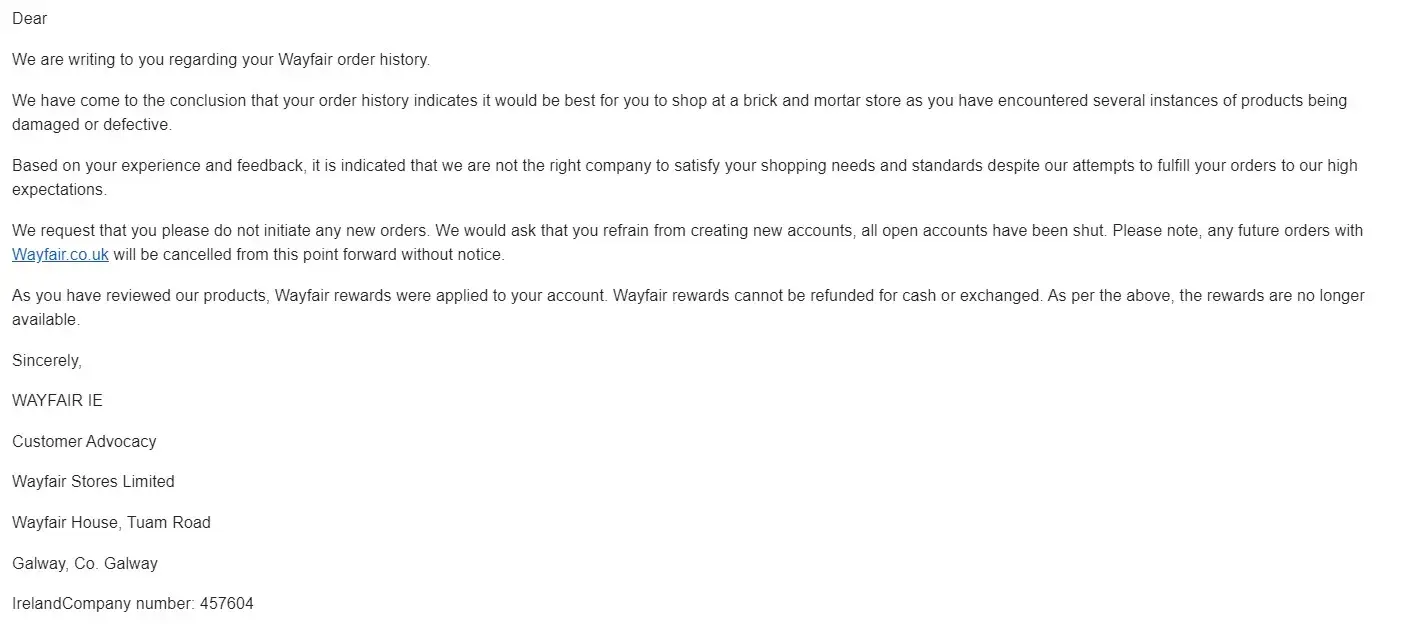 It is a shame companies like Wayfair can act and basically bully you into accepting unfair options like this.