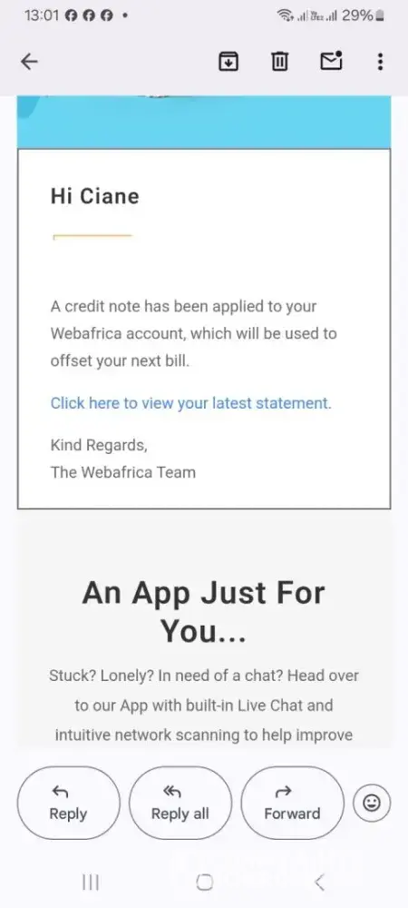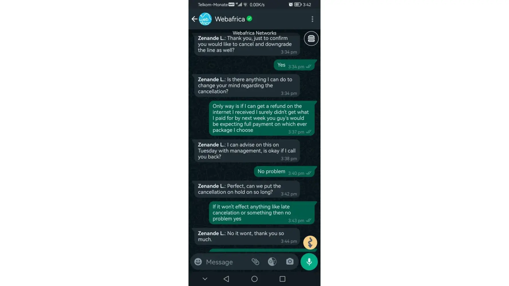 I want to emphasize that I have been a loyal customer, and I expected better treatment and prompt resolution of the issues I faced. It is both unfair and unacceptable that I should continue to pay for a service that Web Africa has failed to provide as per our agreement.