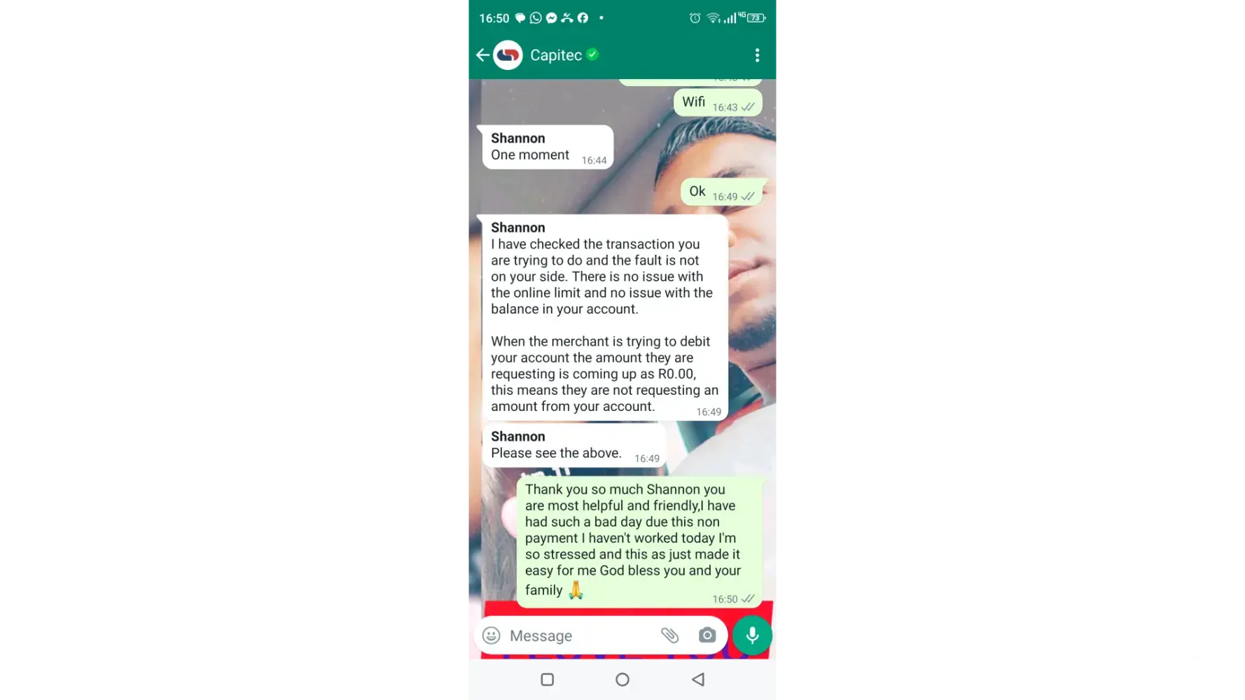 I have tried for the past 2 hours to resolve this and still have no help; I had to contact the bank and cancel my bank card because they compromised it. This is another headache i now have to deal with because they are incompetent and unwilling to admit they made a mistake. In the meantime, i have lost almost R2000. And this while I am unemployed.