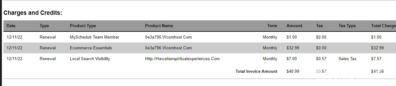 Flash forward to December 2022. I received an email saying that my card had been charged for the monthly fee. This is the first email from Web.com since I signed up for a trial. I went back and searched for any other emails (even in my junk and trash folders) and found nothing.