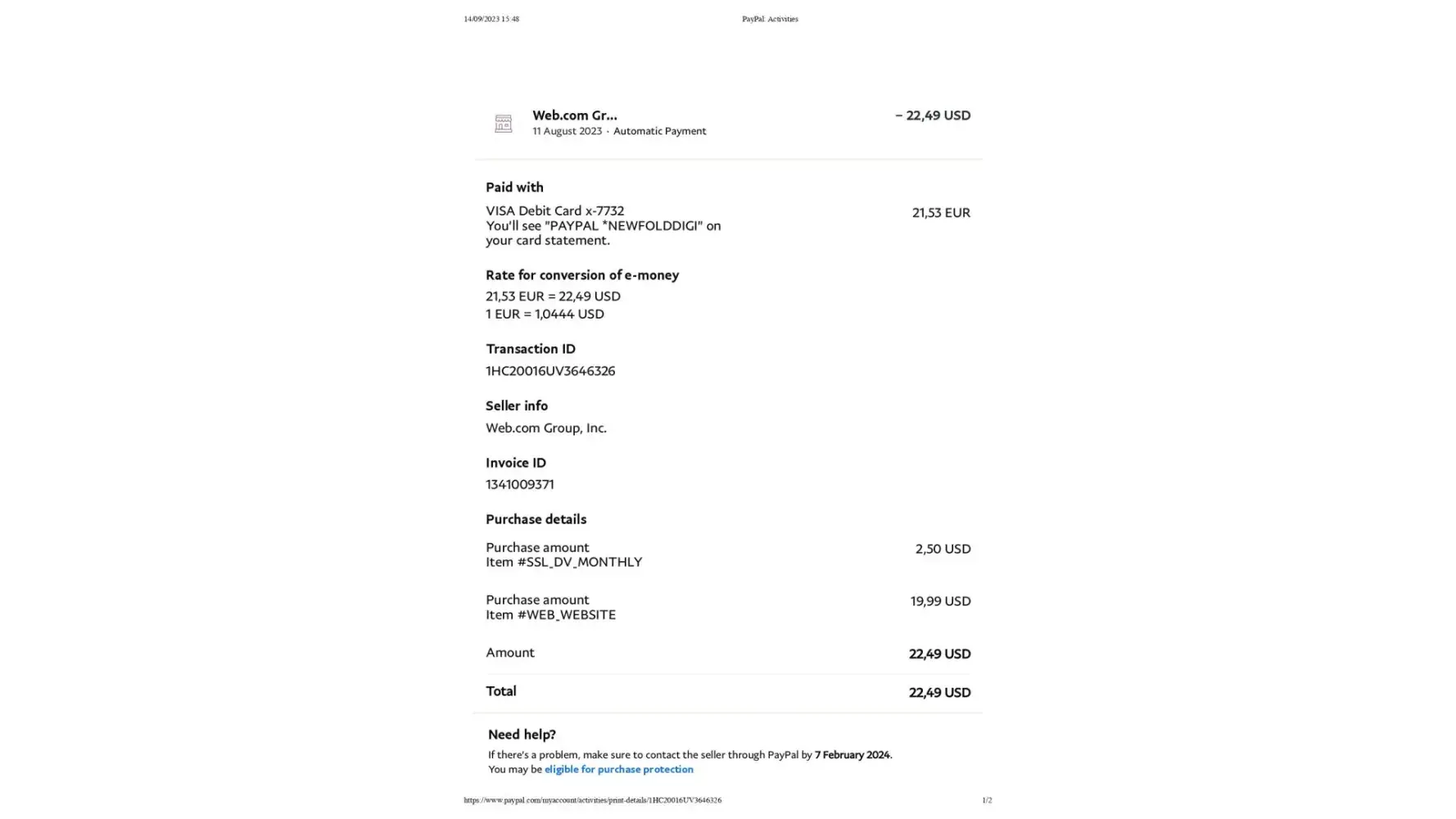 I hope this email finds you well. My name is Leila Yousfi, and I am writing to request a refund for a purchase that I did not make. I recently noticed a transaction on my PayPal account that was processed through web.com, and I believe it is an unauthorized charge.