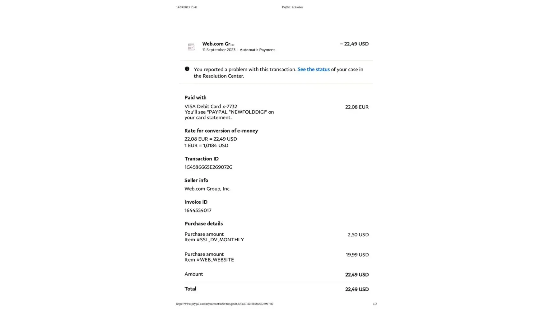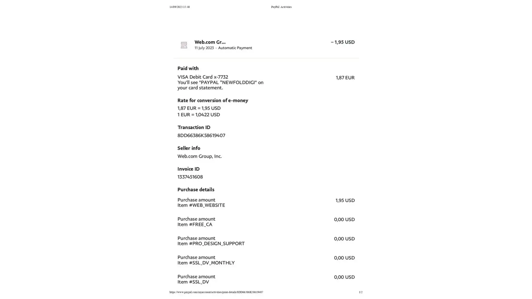 I have attached a screenshot of the PayPal transaction details for your reference.