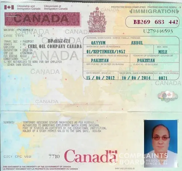 and they are also cancelling my visa files.then when i contacted www.cnrl.com, they