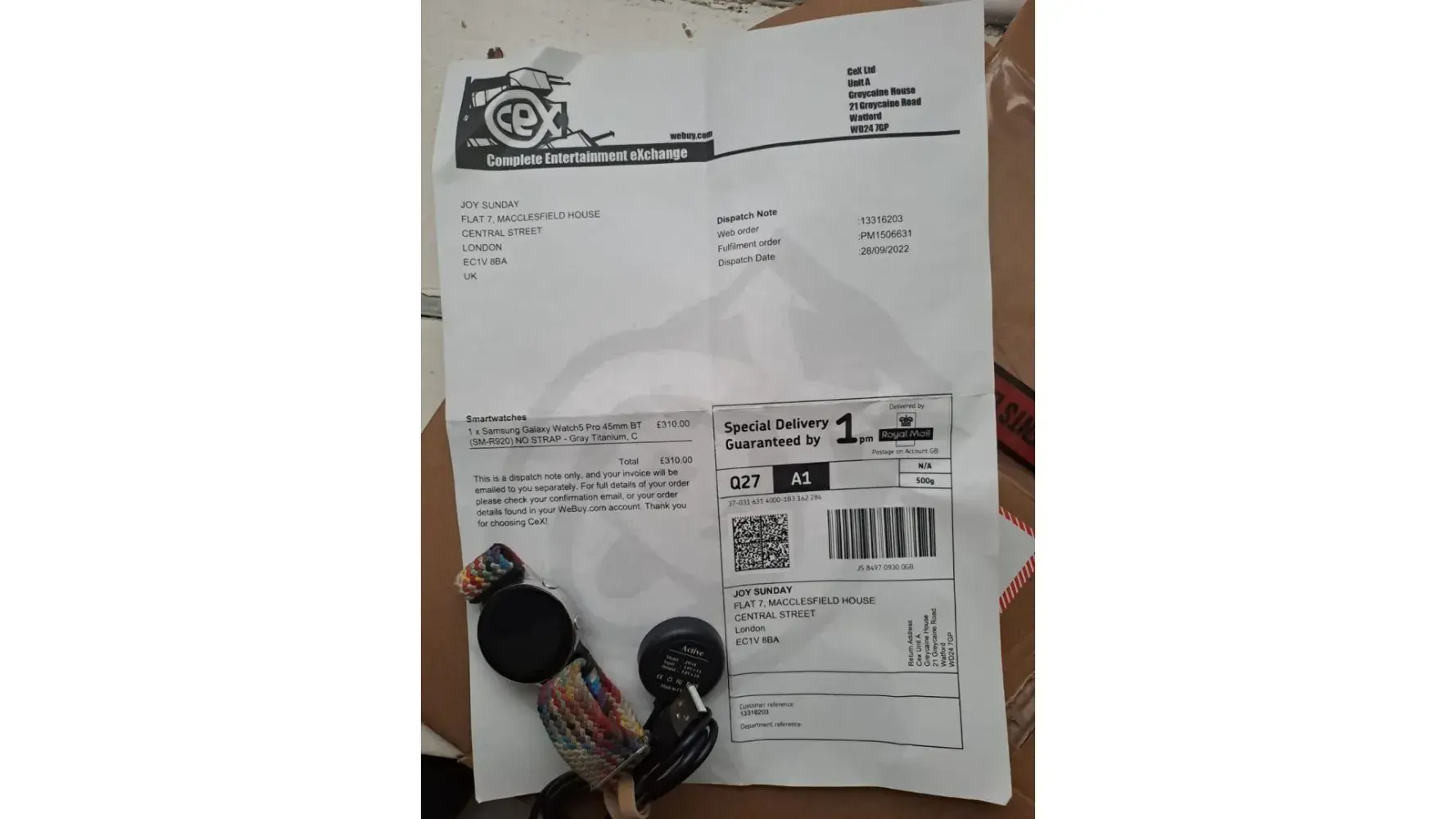 I bought Samsung galaxy watch 5 Pro online today what I got is not what I ordered my order number is [protected]