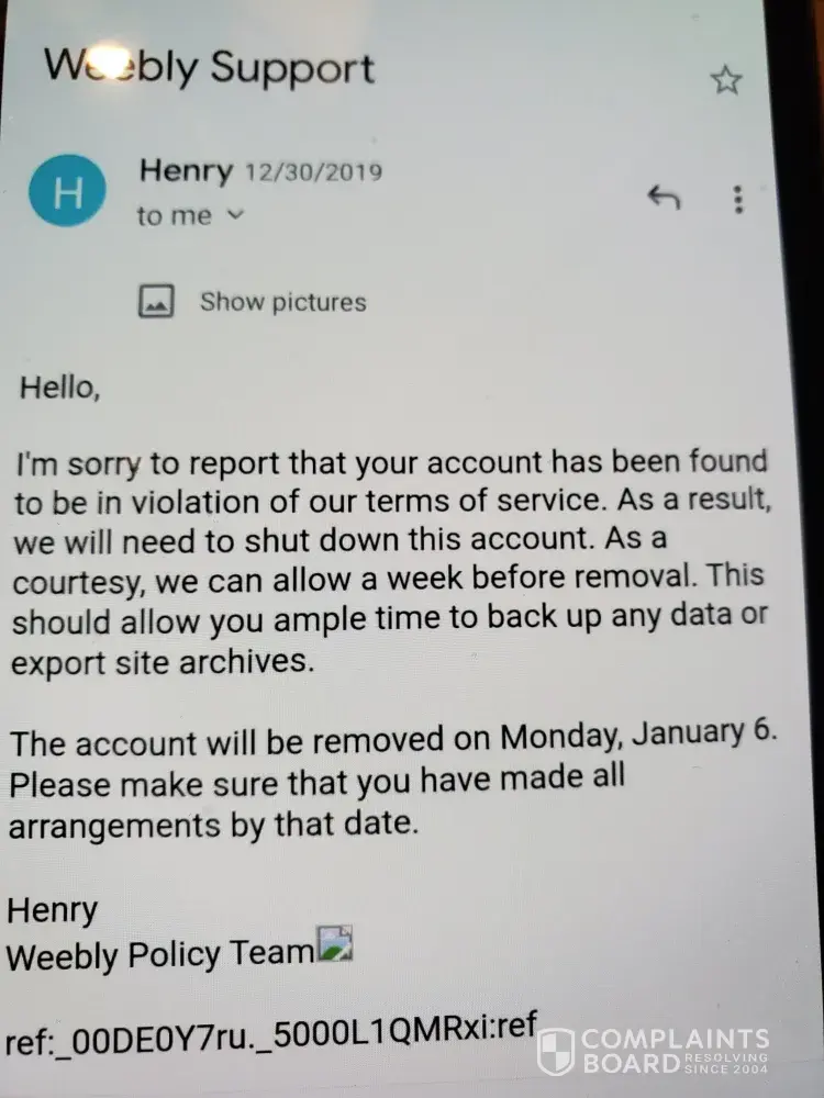 It is highly suspicious that a third party is being used to deal with complaints to Weebly. It has been very disconcerting to read some of the adverse comments made by others. I have used Weebly for a number of years and whilst