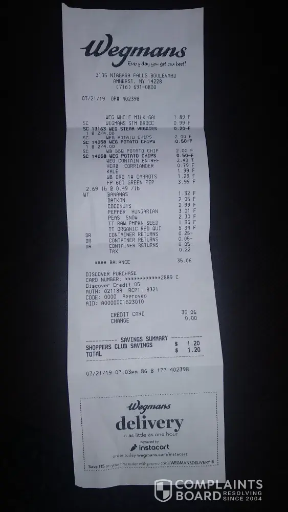 Hi on 07/21/2019 at 07:03 pm I had purchased a coconut from the Niagara Falls Boulevard branch of Wegmans. On 07/22/2019 when I broke the coconut I realised that the coconut is rotten and cannot be consumed. The OP# is 402398, RCPT:8321. I request to receive refund for the cost of the coconut. I am herewith attaching images of the coconut and the bill. Thanking You Swati