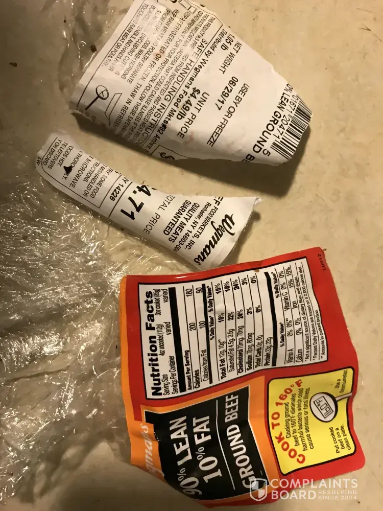 larvae/maggot infestation in wegmans 90% lean ground beef