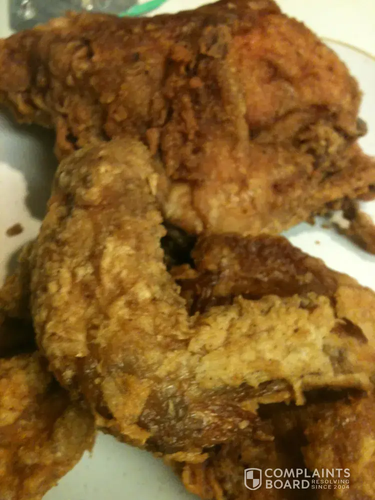 i got expired fried chicken and fries the chicken was very hard. i got it at 5:13pm and the chicken expired at 3:45pm and the fries exp at 4:30pm. i drove to the store and talk to the leader of the store because manager didn't show up to the customer counter and i ask for my money back which they did and then I said I would like some fresh chicken with a...