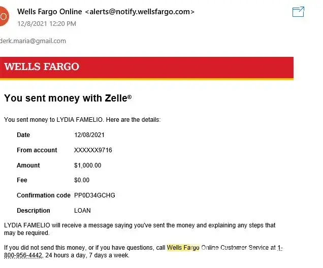 Hello, my name is Rosa Harvan, I have a son John Harvan with mental illness. He receives Social Security benefits monthly. I have a bank account at Wells Fargo together with him. Recently my computer was hacked and money was sent out from this account thru Zelle at Wells Fargo to my name and my other son's Roberto only received the initial $5 but not the $900, I was supposed to also receive $100. Upon investigating the fraud department from Wells Fargo denied the restitution of the money hacked .Total of $1, 000. November 24th was the day that this happened, I immediately called the bank and the account was closed. I also deleted the Zelle receipients. Wells Fargo never asked for my Bank of America statements and my other son 's Roberto to see if the money really got deposited into these two accounts. I am very upset, the only money that my son John receives and saves due to his illness. Please try to help and