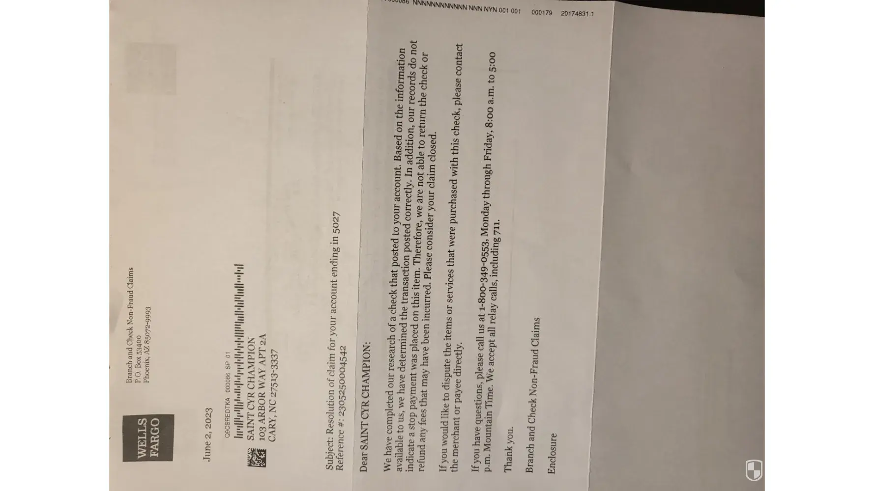 I recently went to talk to the Wells fargo banker to call their customer service line for me. As a result, I receive a letter telling me there was no fraud all is good with the transaction. What a crap! Every time you talk to a representative, you never know what will happen next. Each one comes with a different scenario. They told me way before, they were waiting on the Apartment bank (First National Bank) to answer to them, before returning my money. Then, another person said, to prove that I paid the apartment for them to give me back the balance. Even though I thought it was ridiculous, I still went ahead and fax the documents as requested. Then nothing. When I called again, another customer service brought to another reality. The agent was having hard time understanding what was going on and so on. The last move I did was to go to see the agent.