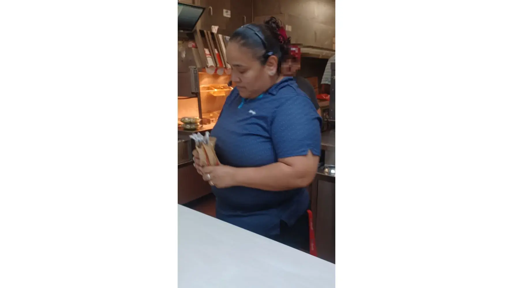 Silvia? She said her name was? Don't know if that's her real name does not even have a badge on very ugly attitude taking me order and wants to raise her voice at me when i was trying to order more food she didn't want to be at her job and I asked her if she's a Manger she replied yes I am and laugh she said she's the only one that works there (commerce...