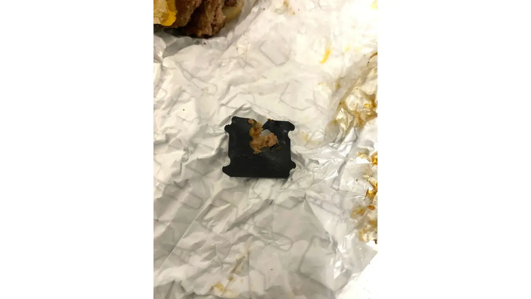 I arrived at store 1776 - Jacksonville, Florida and went through the drive through on 12/15/22 at 1:25pm. I placed my order. After receiving the order I drove to an area to eat my food. As I was eating the hamburger I chomped on something hard. I took this thing out of my mouth and found that it was a piece of plastic. The manager on duty. who I went back...