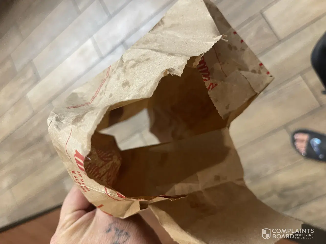 I visited our Wendy's yesterday. I was at the drive thru and was handed a bag with hot French fries and chicken nuggets. The bag was not sealed correctly at the bottom and everything fell through the bag and on to my lap. The lady at the window clearly seen that the fries were very hot and burning me through my pants on my lap and legs. I had to jump up off my seat and was picking up the hot French fries from my lap! She just stood there and said "let me get you more fries". When clearly I need a bag to throw the hot fries and chicken nuggets in! I had to ask for a bag. When I got home clear across town my legs were still red, not deep burns but red from the hot French fries. I called Wendy and they made me go all the way back to take pictures and write a statement. No one has called me to check on me or anything. All I was offered was a free small frosty. They didn't even offer to reimburse me for my order