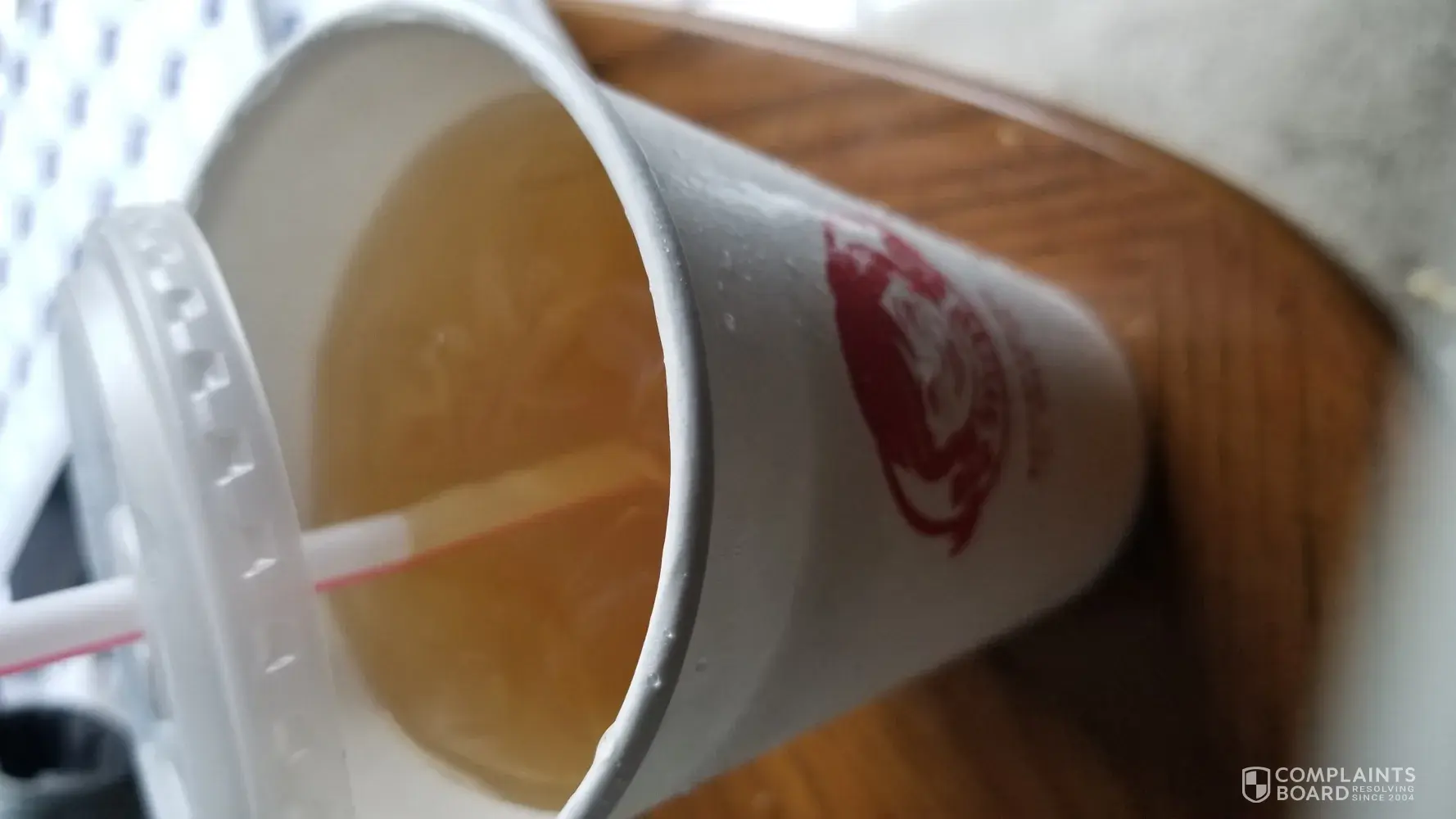 Hi, I'm so disappointed...I ordered 4 for 4..jr bacon with extra bacon..with no tomato..with tropical green tea drink.. this what i got..the drink taste like flavored water..the sandwich has tomato that i stated i didnt want...and i suppose to have bacon ..plus extra bacon ...but as u can see no bacon at all..if I want late for wrk I would have went back...this is sad ..and I will not go back to this Wendy's again..nor the drive thru.😥 my meal was horrible...