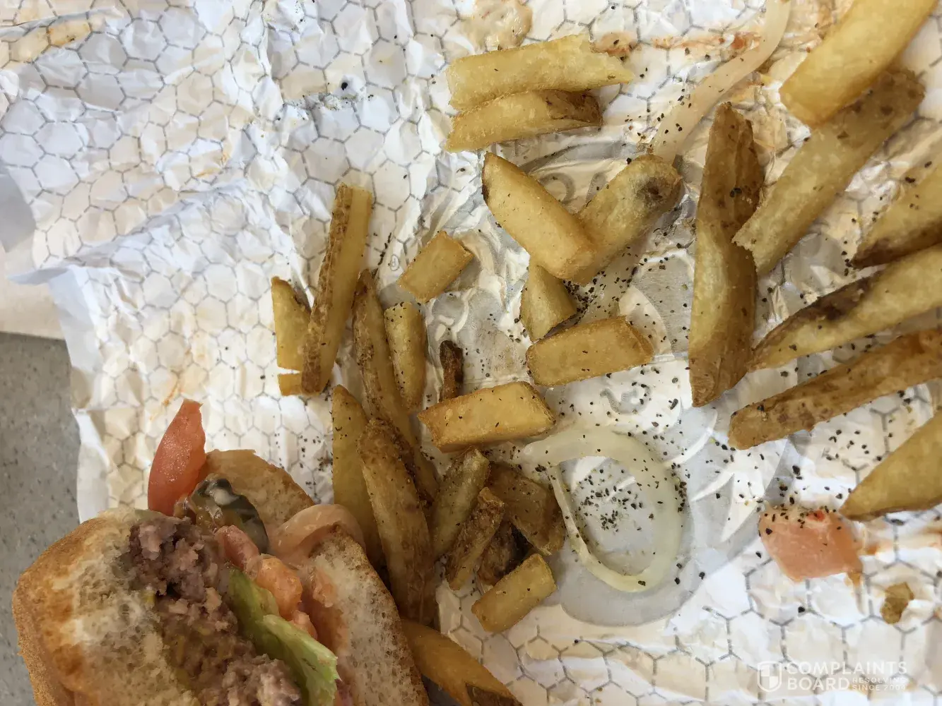 I visited my local Wendy's today and bought a baconator meal large & a apple pecan chicken salad when I got home which is not even 10 min away from the restaurant and opened my bag of food I realized that the fries were extremely cold and the burger meat was hard and not fresh at my wife opened her salad and the chicken was hard and cold also some pieces of lettuce had a little bit of a brownish coloring on it I'm very disappointed this is the first time I ever had a problem with this restaurant
