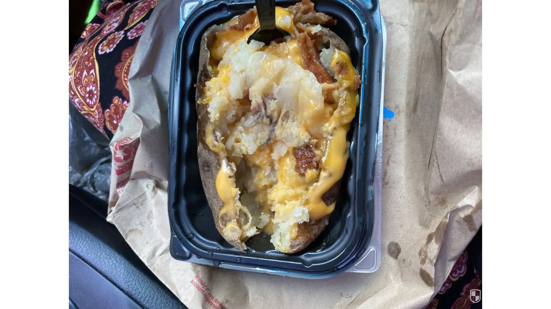 I ordered a bacon and cheese potato and a medium coke. I ate 2 bites before i stirred my potato to mix the cheese and bacon together. I discovered a worm more like a centipede was in my potato. It was hard as it was cooked/ baked in the food.