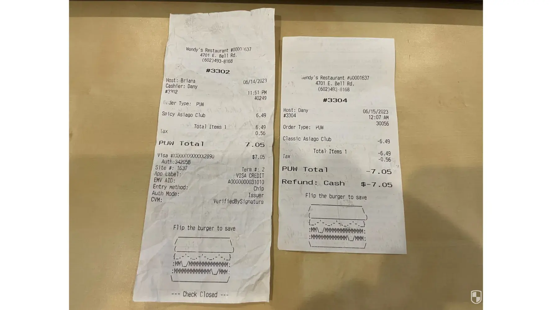 I bought two Dave double, one was still raw meat was pink the other was burnt. Karolyn #3340 8/8/23 at 1:17am My total was $15.04 receipt # 30233. I had just got off work and I wanted a burger went to Wendy’s 7023 S Western. I ask the cashier for my receipt she gave me a receipt that was not mines, another lady came to give me my food I asked her for...