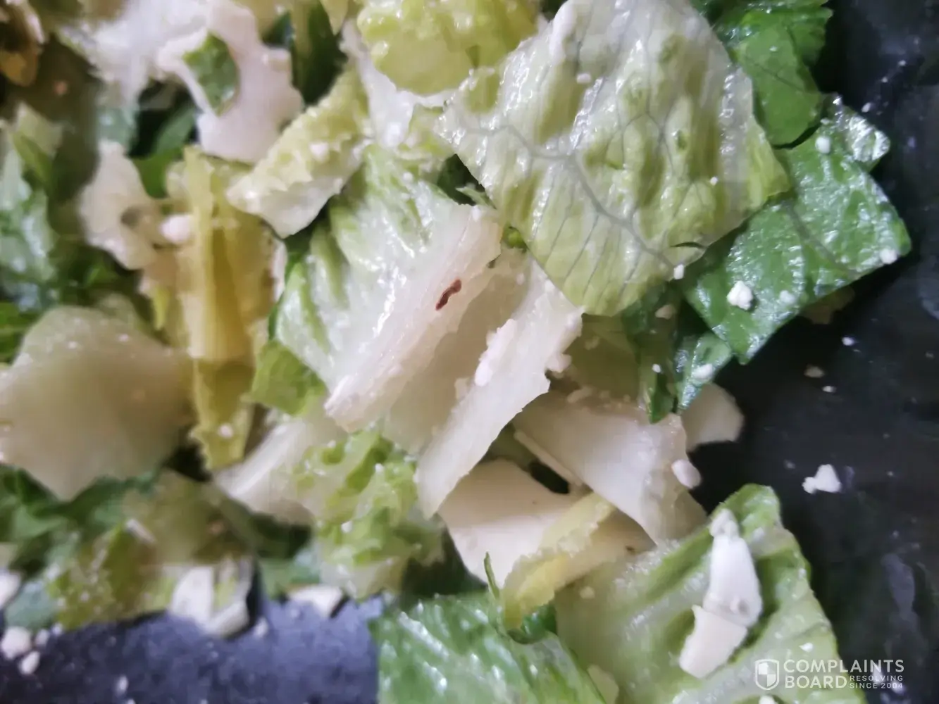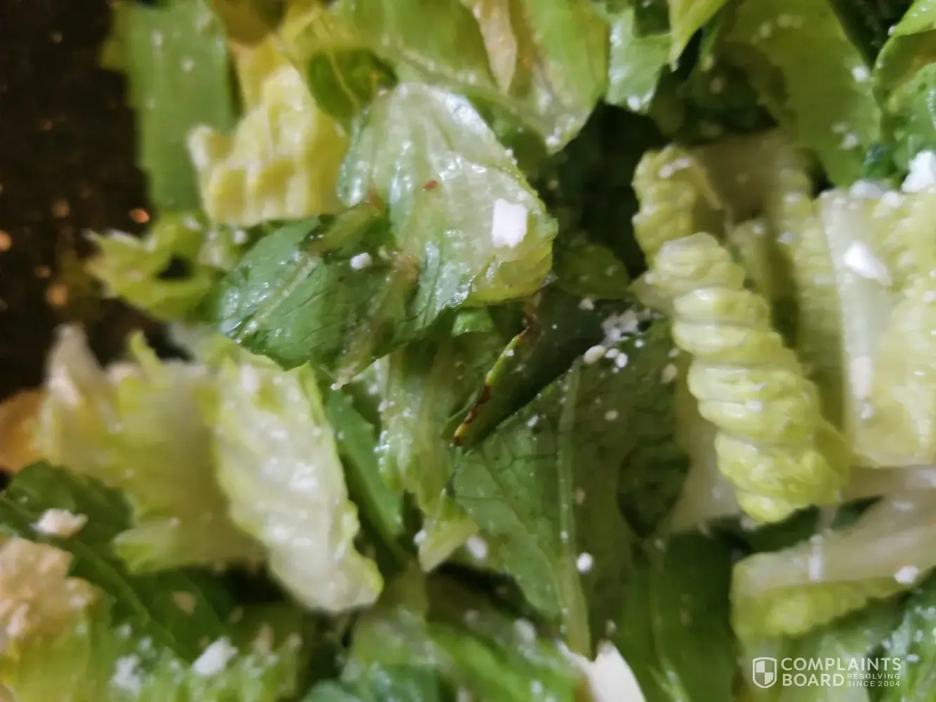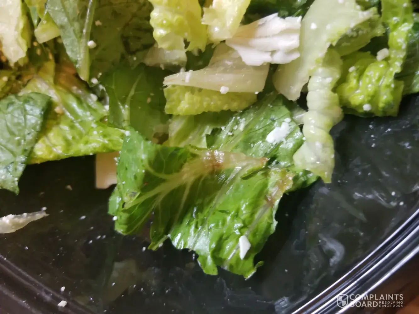 On 8/11/2017 approximately around 12 am i purchased a chicken ceaser salad with no chicken and when I got home and opened it there was a foul odor coming from it. I then began to inspect it and noticed the lettuce had been going bad and had black spots on the edges of it. I have photos and videos to confirm this information as well. I am appalled that I was sold this without any regard to my health when they could of simply said we do not have any more salad tonight. I am very upset that they took my money and served me a salad with old lettuce.