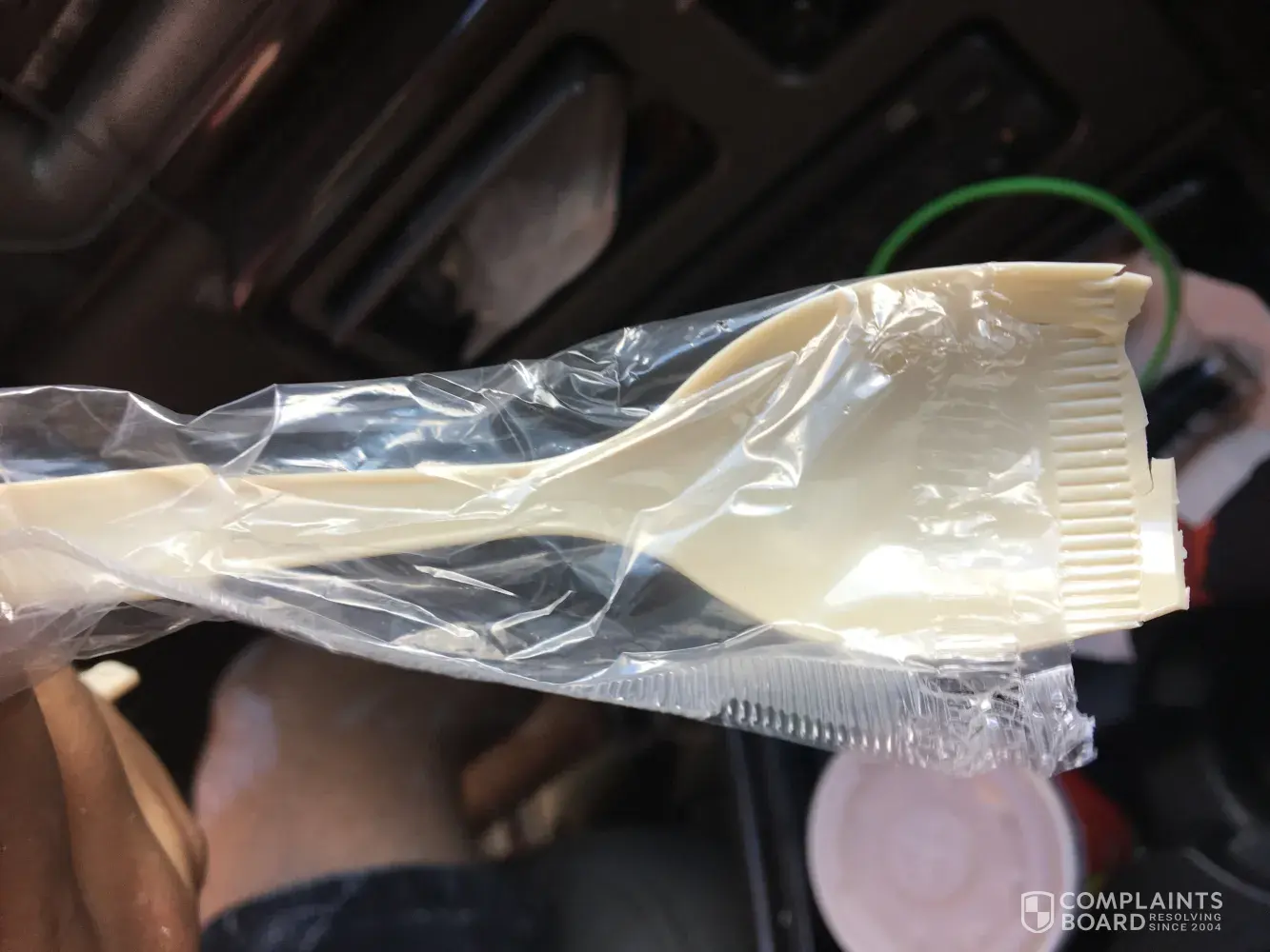I ordered a strawberry mango salad from the Wendy's in New Lenox at the drive thru window. When I got home to eat it, I noticed the strawberries had bad spots & were not edible. It was not just one strawberry it was all of the cut up pieces of strawberries. See photo enclosed. Also, I ordered a small chocolate frosty & the spoon was malformed. It had sharp edges and clearly could not be used. I'm not sure why it was handed to me out the drive thru window.