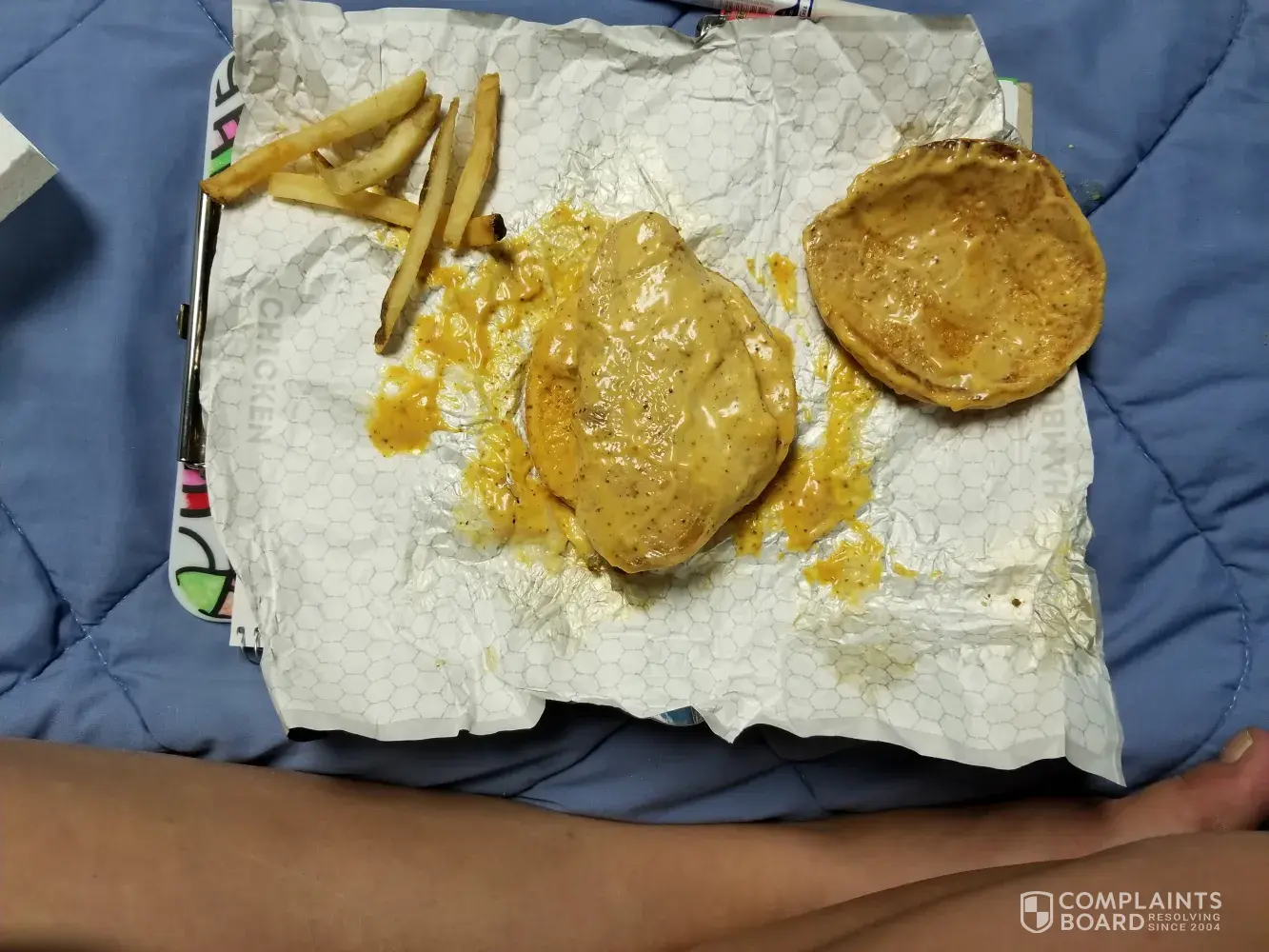 I ordered a 4for4 chicken sandwich my fries was cold and taste old my sandwich was cold as ice due to my food being cold I contracted food poisoning
