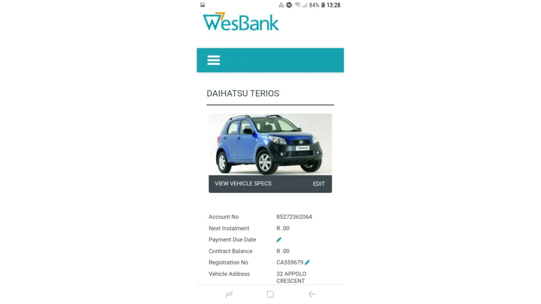I had purchased a car through WesBank a few years ago and had a good experience. The integration with FNB is very convenient, allowing you to view your WesBank balances on the FNB app. The WesBank account displays under your other accounts, and you can easily transfer funds to your WesBank loan account. Note the word "Transfer" above. Not "Payment". You get to transfer your money from your FNB account to your WesBank account.