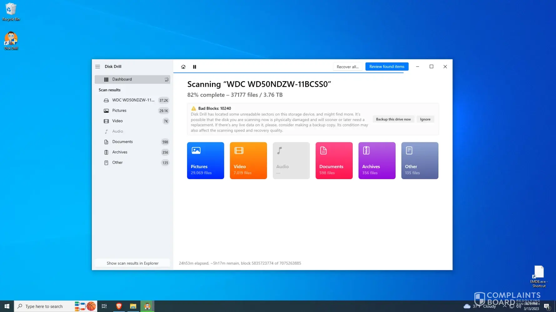 The problem I have been caused, if not resolved is extremely serious. Not simply that time it will take to rebuild files where it is possible, but also a significant amount of vital information that I will not be able to recover.