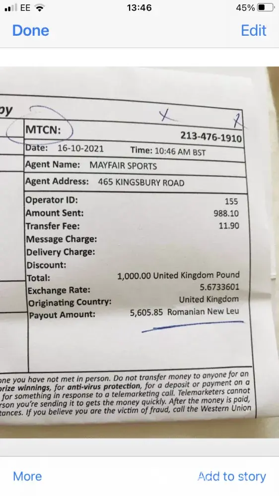 I have sent a money in Romania on Saturday 16/10/2021 to my sisters and she can't pick up the money for some reason.The agent's tell her she needs a Sms from WesternUnion to confirm is not a fraud.My name is Julia Kelemen sender, MTCN:[protected], amount sent988.10£ in Romania Operator ID 155.My sister name:Dobai Ildiko.Thank you