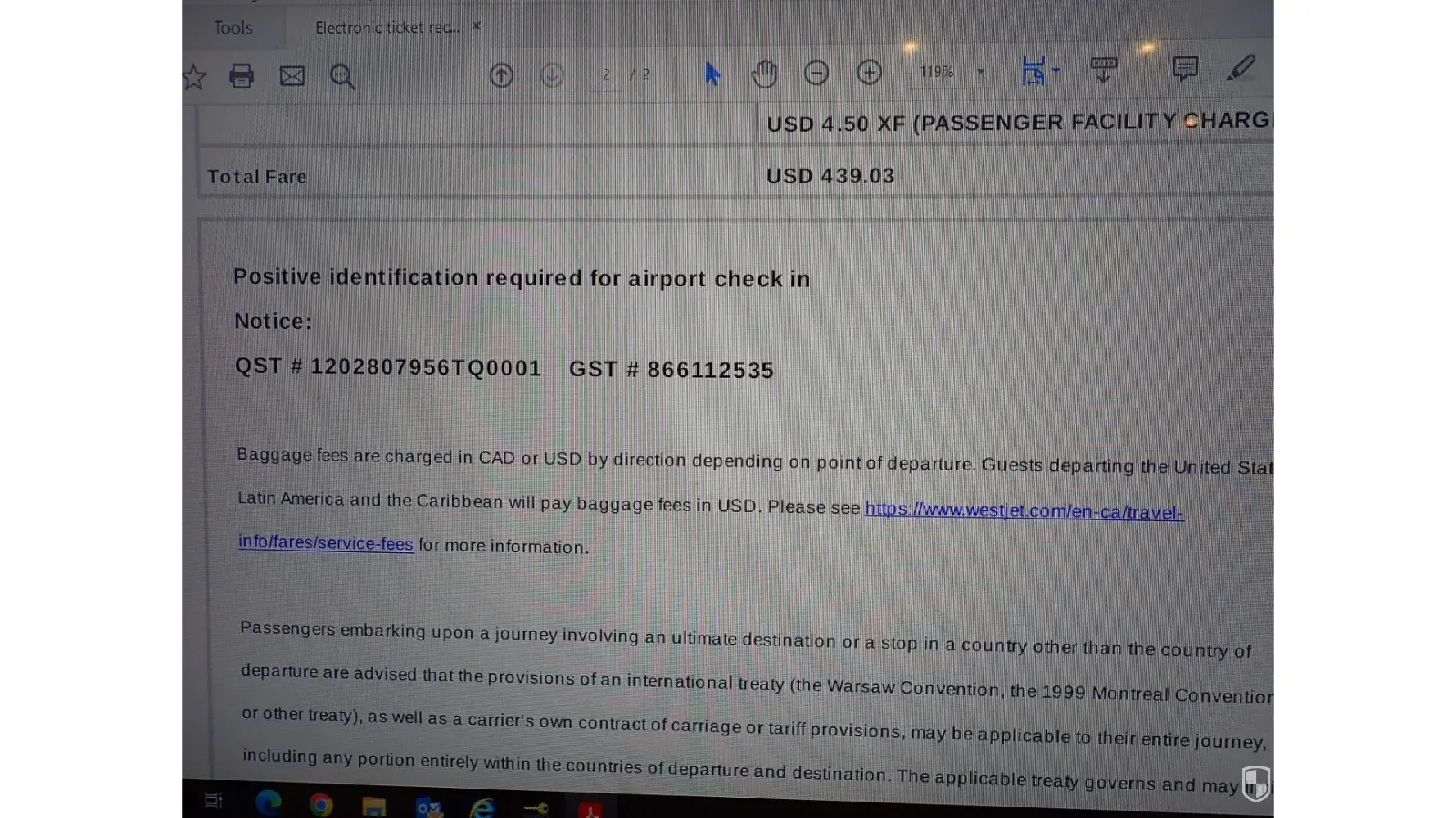 Westjet reservation ZXQJTV Apr. 21, 2022