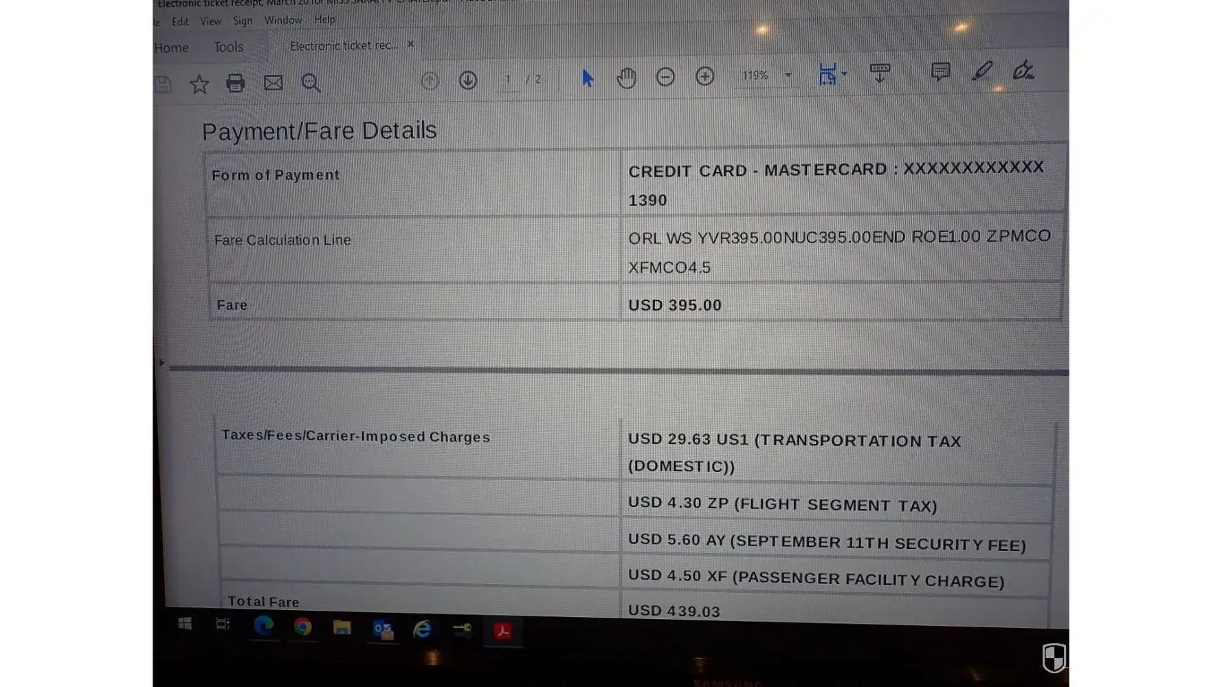 I request full reimbursement for the flight and the hotel which is $363.14 not just the token $150.00 and favorable compensation for the following reasons: