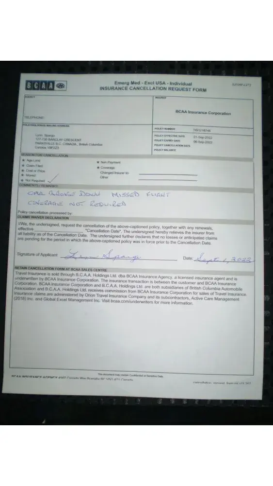 I was hospitalised on the 16th July for 5 days With Covid 19 and was 20 days Quarantined so i could not Travel, when my wife wanted to cancel the flights