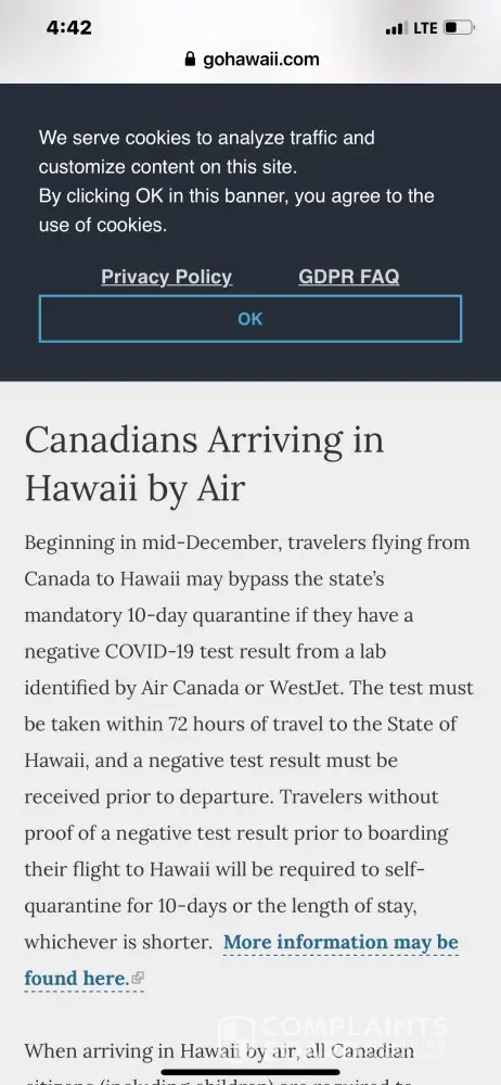Three days before our flight to Maui, because I could not get through to a live agent, I decided to drive to the airport and speak directly to an employee so that I could receive accurate information. I spoke with Brittany (who was the manager on the floor) and Ryan who was the attendant at the check in desk. I wanted to verify the correct test needed for the covid test prior to our Maui flight. They both assured me that the rapid test in the airport (next to the Fairmont Hotel) would be sufficient. My daughter and I went to that lab and the ladies there questioned whether a rapid test would suffice for Hawaii as they believed we needed a PCR test. So, I went back to Brittany and Ryan. They both checked with other people and then showed me their computer information which gave the requirements and which did not stipulate anything additional for Maui (of which I took a picture of, on their recommendation that I keep the picture should anyone ask me). On this assurance my daughter and I went back to the airport lab and had our rapid test completed. When I went home that evening and completed the4 check in for the QR code a note came back indicating that this test was invalid. I went back to westjet at YVR the next day and Connie assisted me and she advised me that I most likely needed a PCR test. She tried helping me book this but the numbers we used went through to Ontario and the local BC numbers she had were not for travellers only for those with symptoms so she recommended I check the walk in clinic downstairs, which didn't have any available appointments and so we decided that if the rapid test was not accepted in Maui then I would have to take another test in Maui and pay the additional testing for the PCR. I was ok with that so they provided me with my boarding pass based on that agreement.