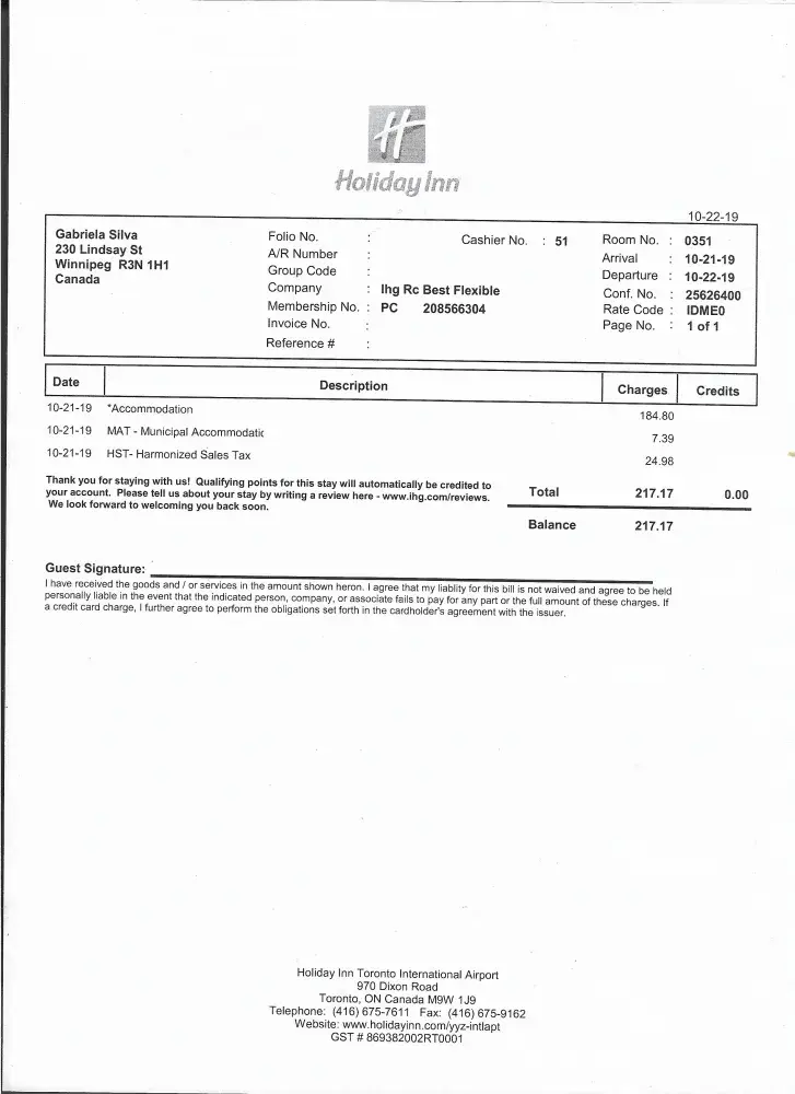 As I still think that this company can make the difference, I attached to this letter the receipt payed to the hotel and I truly believe that you will change my mind and trust West jet again.