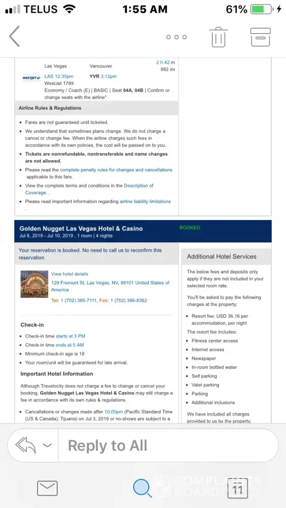 We were going to Vegas no matter what. It just was extremely disappointing how the WestJet staff were so unwilling to help us. I found them to be very cold and not in the least bit empathetic to how we were feeling.