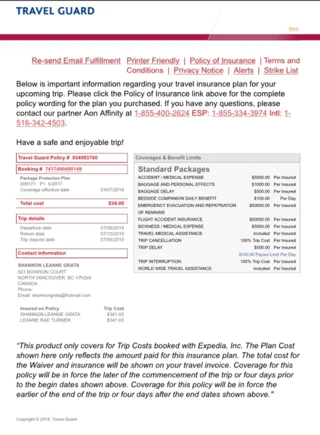 We did purchase Travel Guard-travel insurance Policy number: [protected], booking#[protected]