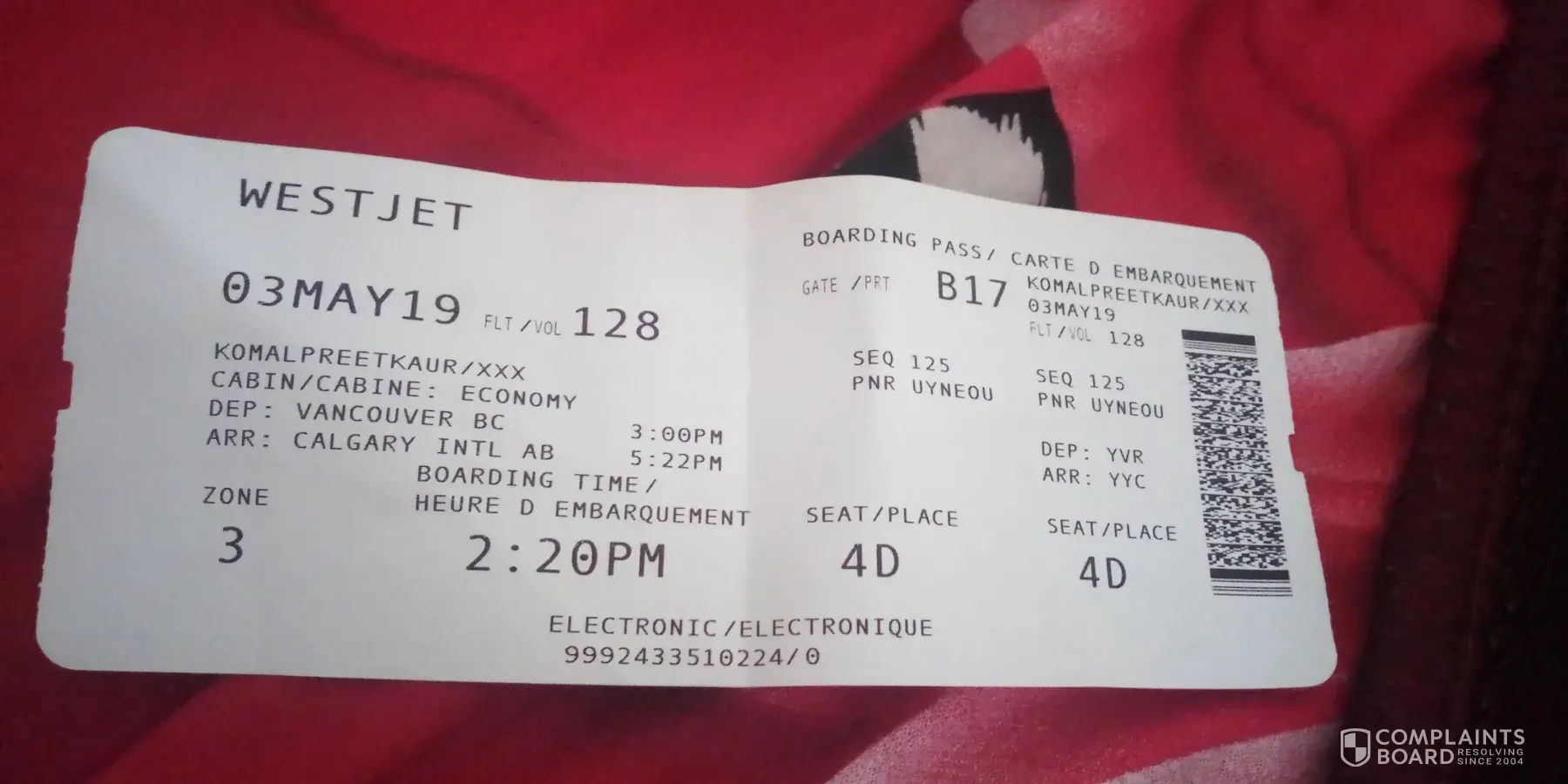 Hi my name is komalpreet Kaur and I traveled from India to Canada with my baby on May 2, 2019. On May 3 I reached Vancouver with my baby and from Vancouver I had my flight with WestJet to