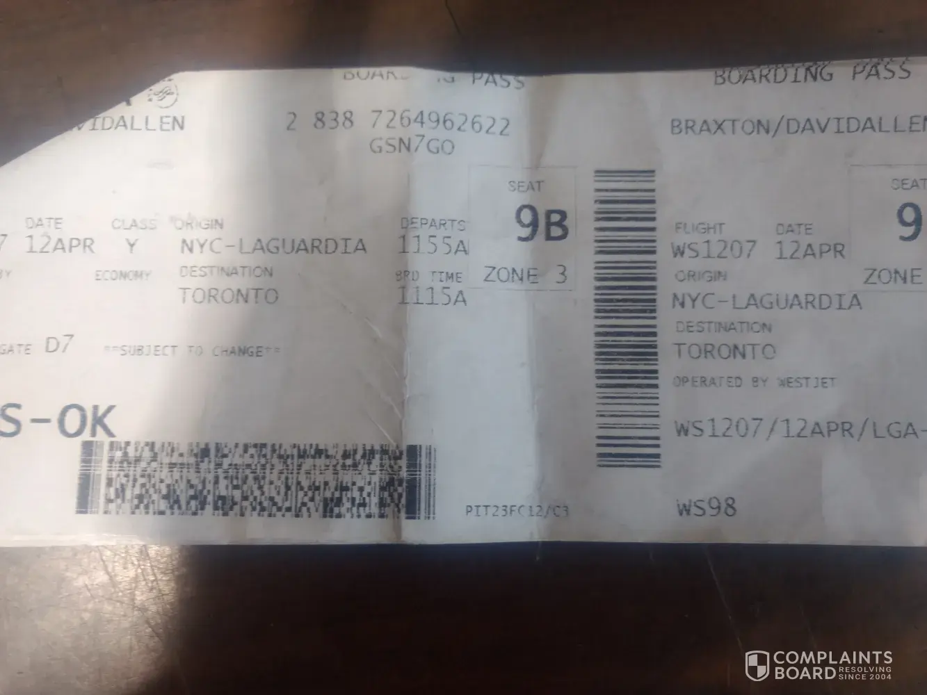 incorrect info on boarding pass