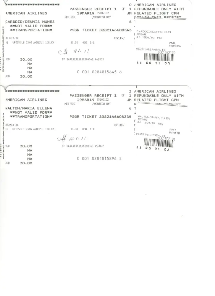 Tuesday 19th - American Airlines Baggage Fees (2 bags $60.00USD