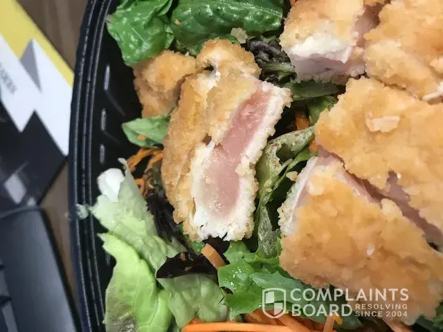 On 9/30/18 around 4pm or 5pm I ordered two Garden Salads with Breaded Chicken along with other items. My husband and I planned on saving our salads to eat for lunch the next day at work. When I was about to eat the chicken it was uncooked. The meat in the middle was clearly not cooked well enough. I called my husband to ask if his salad was the same and he reported his chicken was uncooked as well. I had to throw the whole salad away due to my food being contaminated with uncooked chicken. I am requested a refund of my money. I contacted the Whataburger location I bought it from and the manager offered me another salad but I don't want another salad just because I was already grossed out by the one I bought. I just wanted my money back. I did not have the receipt since I had bought the salad the day before I was going to actually eat my salad. The salad was already cut into pieces when I opened it, so clearly who ever cut the chicken at Whataburger had to have seen that the chicken was not fully cooked. The Whataburger location I had gotten the salad from was: