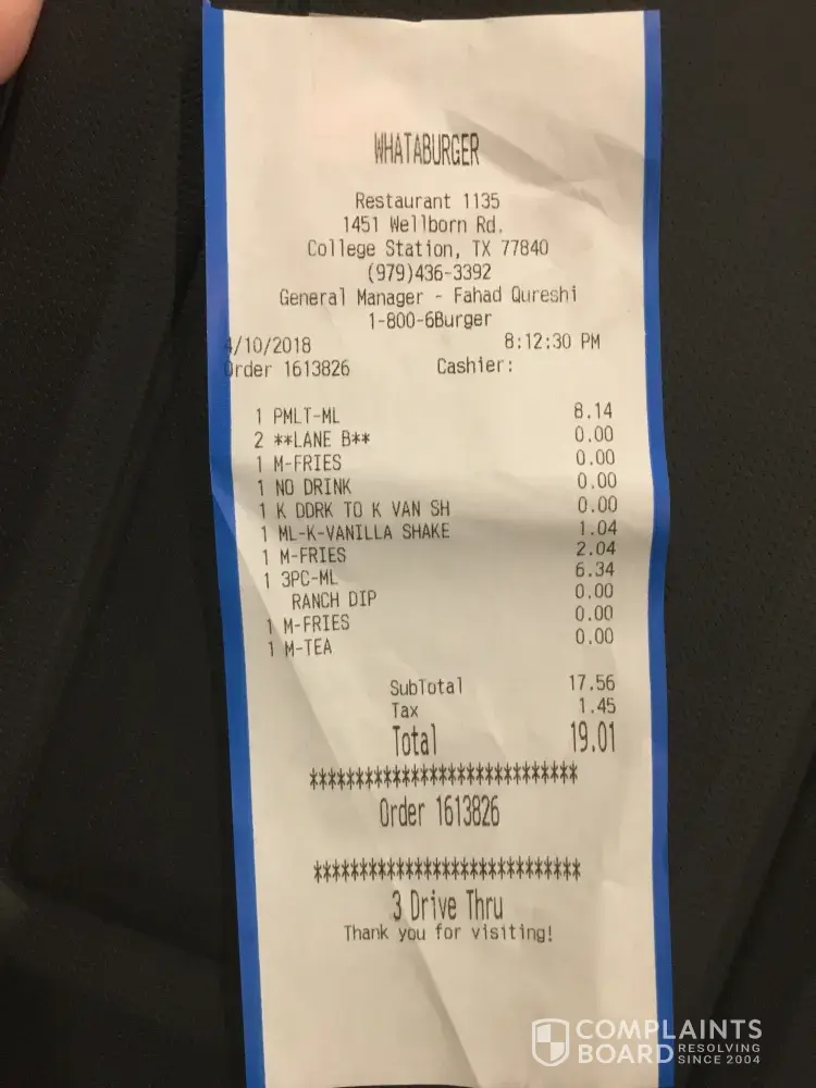I really don't know if your Whataburger cares much about customer service, but I was not satisfied with the service I recieved from your drive thru employee nor the cook. There is lack of attention and customer service overall. Your drive thru employee which was a female made me feel like I had to rush and let her know what I wanted to order. She came and charged me about 5 minutes after I was already at the window, and never even acknowledged that she would be right with me. She gave me my order and did not even offer condiments, and just closed the window giving me no time to even ask for any. I asked her for 2 jalapeños at the time of paying, and she only gave me 1 for which she didnt even charge me for. Worst of all, I asked for a #21 with bacon and the receipt says it, and I got a sausage BOB, for which I HATE SAUSAGE! As well for the fries, they were only about 1/3 full. Therefore, I paid about 2 hours of an employees pay, and ended up with nothing to eat. I used to be a manager at a Whataburger in South Padre Island, and I would have never tolerated this from my employees. This just reflects the type of management at this specific store.