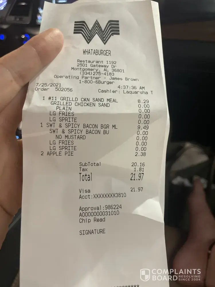Read full complaintDrive thru order