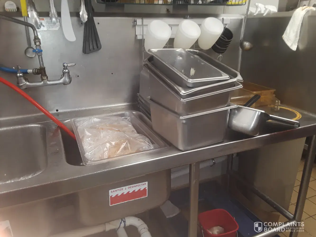 theres cockroaches everywhere, trash all over the floor, young employees that dont do there job, major safety violations for customers and employees, raw chicken in dirty sink and fresh tomatoes covered by dirty dishes.