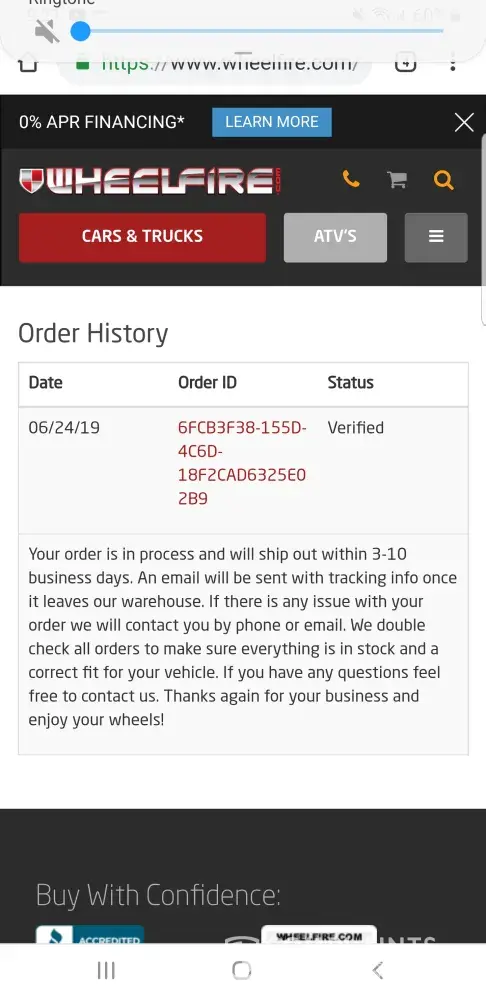 Lmao first of all these complaints all seem to be on par with my experience, I was told my rims where in stock, 10 days after ordering I was told they were on back order, after almost a month I got the wheels a weight had falling of one wheel, they said it happens with shipping lol, then I had the tire store check the balancing of the other tires and they were all off, they insisted that it was impossible... Like it's not possible to fu I up while balancing a tire, then the tpms sensors won't work at all, smfh... Dont trust this company at all, and i'm definitely a verified customer and can prove it if need be, if you do order from these people just get rims and be ready to wait, also why can't I find a place on wheelfire.com to leave a review lol cause yall scam like a motherfucker