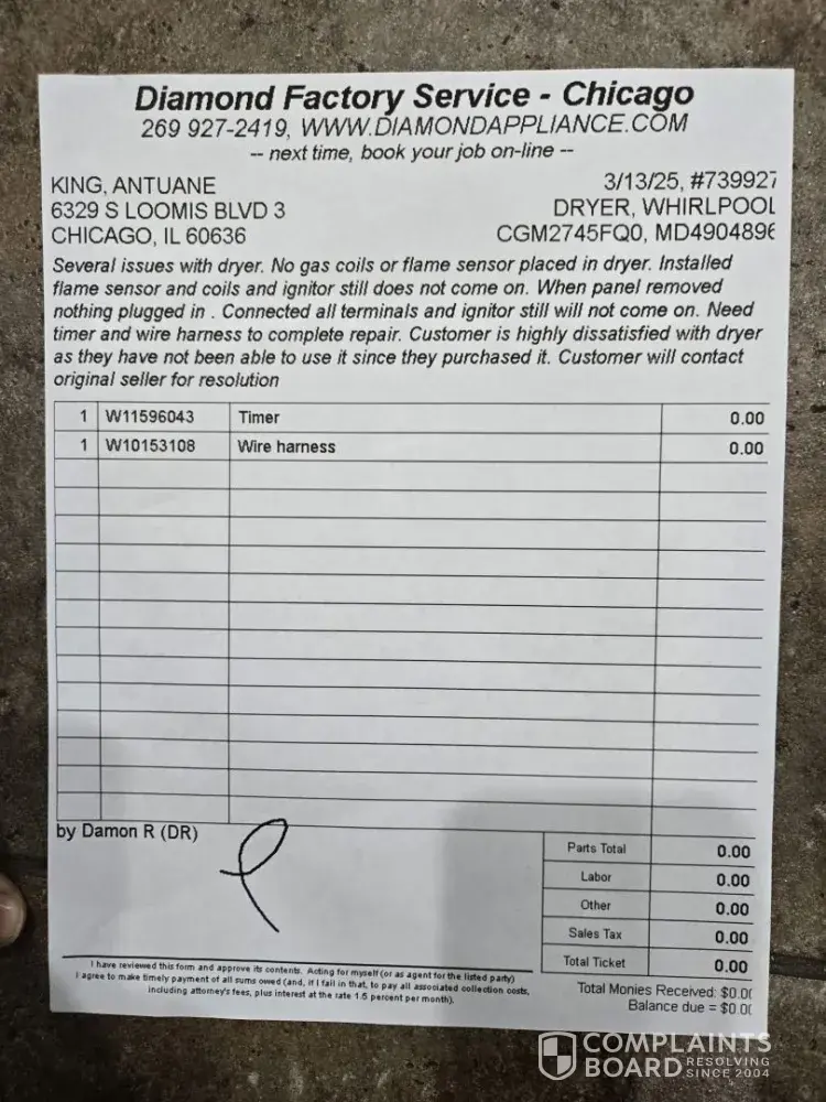Whirlpool is a terrible company I ordered a washer and dryer, and the dryer came without a coil flame sensor wiring harness and timer in which is just a hull after installing all of them parts the dryer still does not work and they have to order more parts they told me to deal with it and they are still trying to repair it instead of giving me a new dryer I...