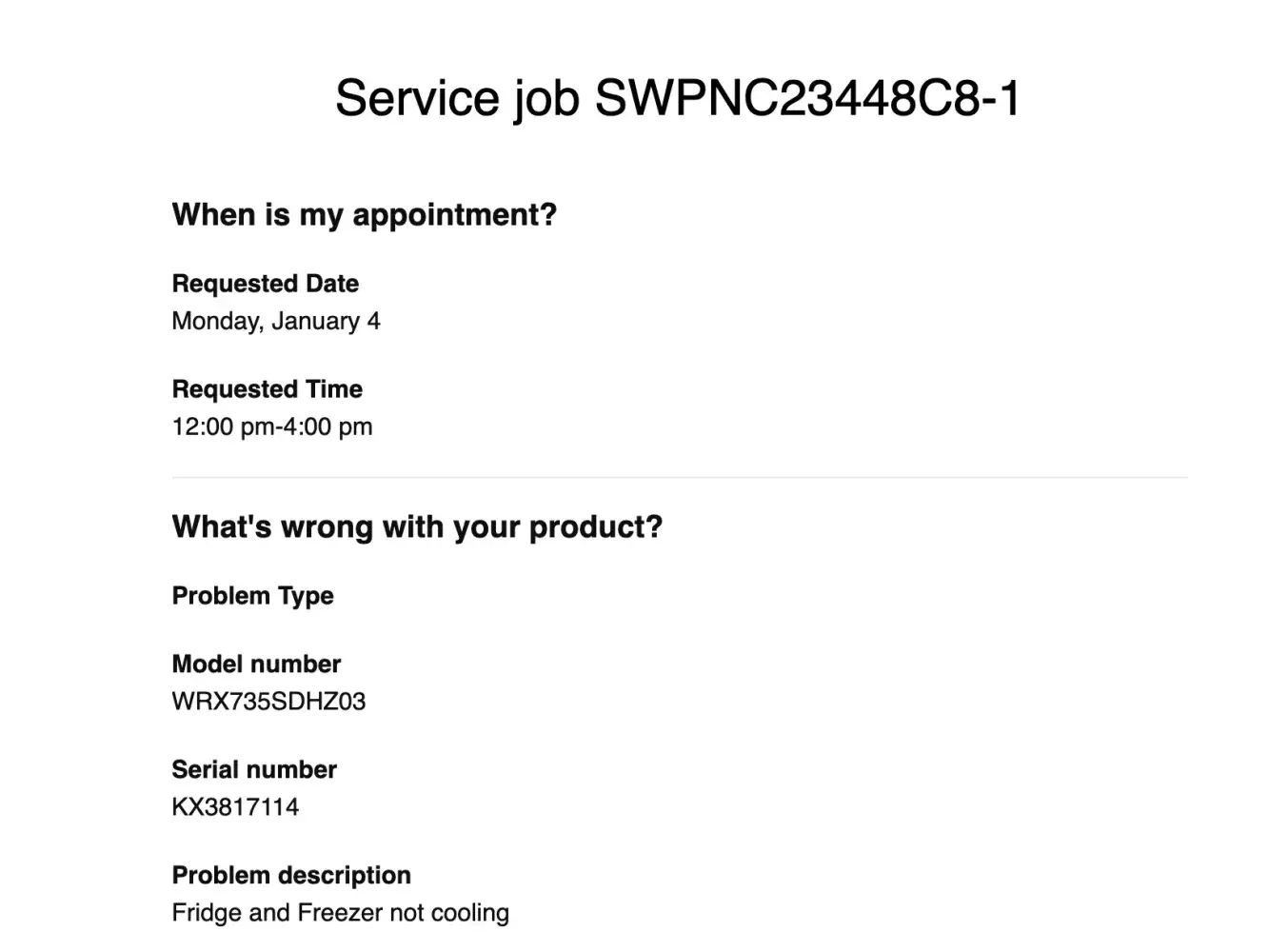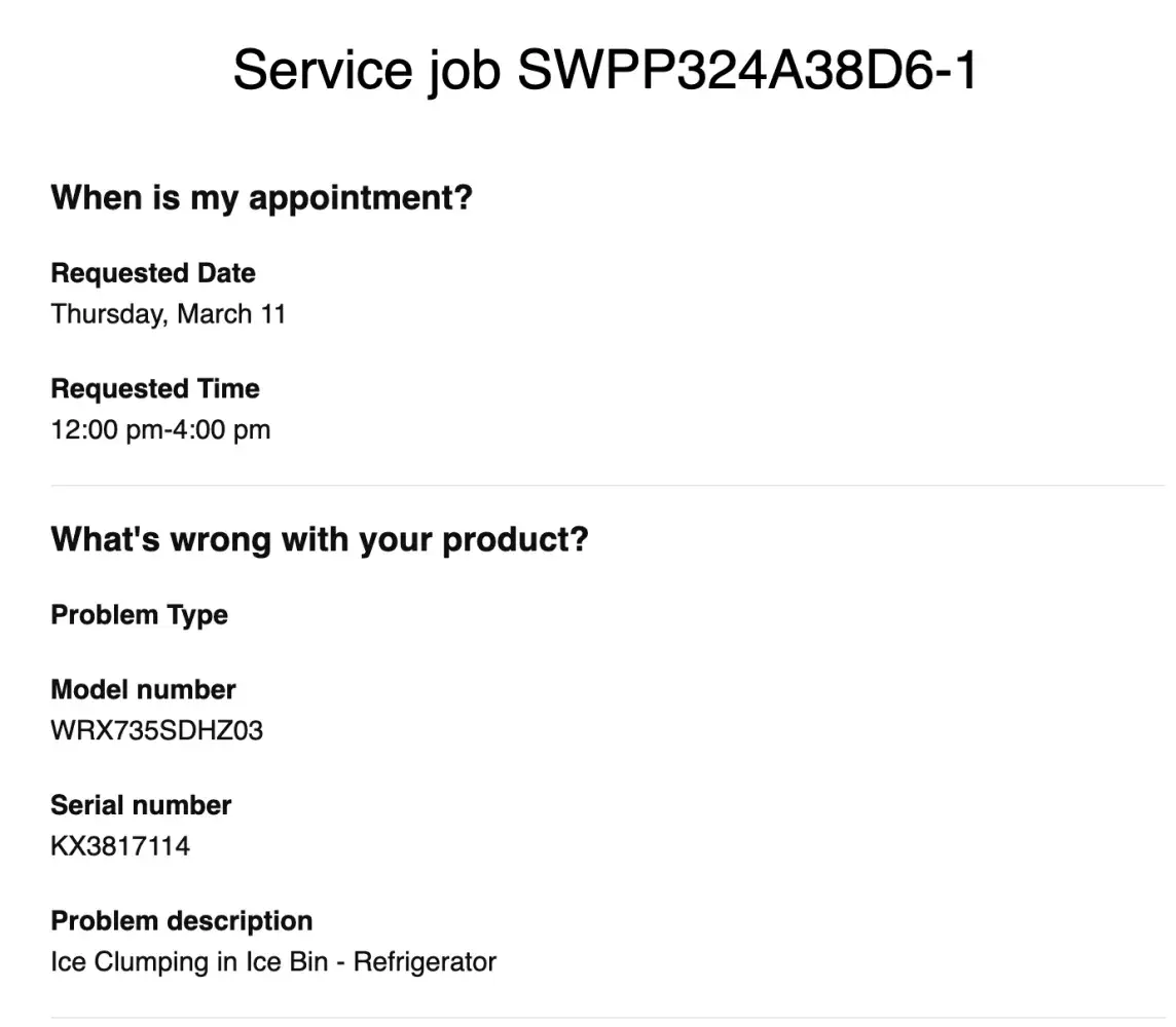 Desired outcome: Fix our refrigerator we have a warranty in place.