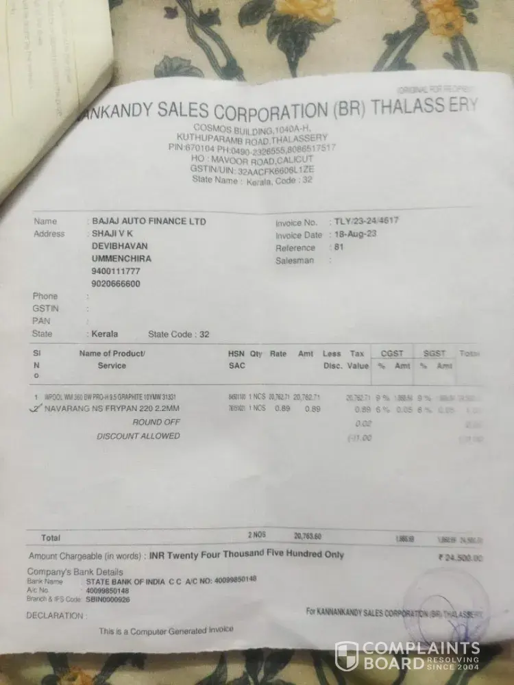 I hope this email finds you well. I am writing to bring to your attention a significant issue I have encountered with the WPOOL WM 360 6W PRO-H 9.5 GRAPHITE washing machine, Model Number 10YMW31331, which I purchased from your store at KANANKANDY CHIRAKARA on August 18, 2023.