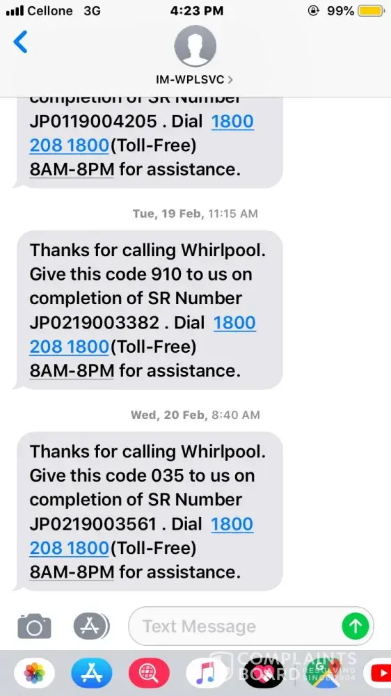 I had complained for my whirpool refrigerator for the sound we experience in it while switching on or off other electrical appliances on 27th January.On next day your man santosh from service centre arrived and told me that its some part was not working and I'll get it by tomorrow, i keep waiting and waiting then on 19th feb i again logged a complain then he came with the part and replace the defective part .I had paid Rs.3720 at that time when your agent arrives to replace that part from our fridge. But very next day same problem arises, then the man from your service centre came and replace that part from the existing part and said we'll soon get it replaced from new one in few days.Then i waited for about 10-12 days and call back the service centre the person whom i talked was VISHAL JAIN and he told me to send the complaint msg I received on his contact no. 9549095018, he keeps saying we're searching for your product parts and get it replaced by soon. .Even they are not updating me regarding my complain.Then i keep on calling him From march to today's date itself he took my money and my problem was not resolved and he also have no time to talk to your customer as whenever i call him he keeps on saying I'm busy here I'm busy there i have proof regarding this. I m really surprised that what kind of service you are providing to your customer. kindly tell me that is it my fault that I m using your product. kindly tell your all consumers that why should we are using your product in comparison to others while they are providing better service in comparison to you. lastly what is your target - only selling your products or better customer satisfaction and if u don't have any parts regarding this product then u should told us at the time we had purchased it we shouldn't buy it and this means you don't provide service on Old products.